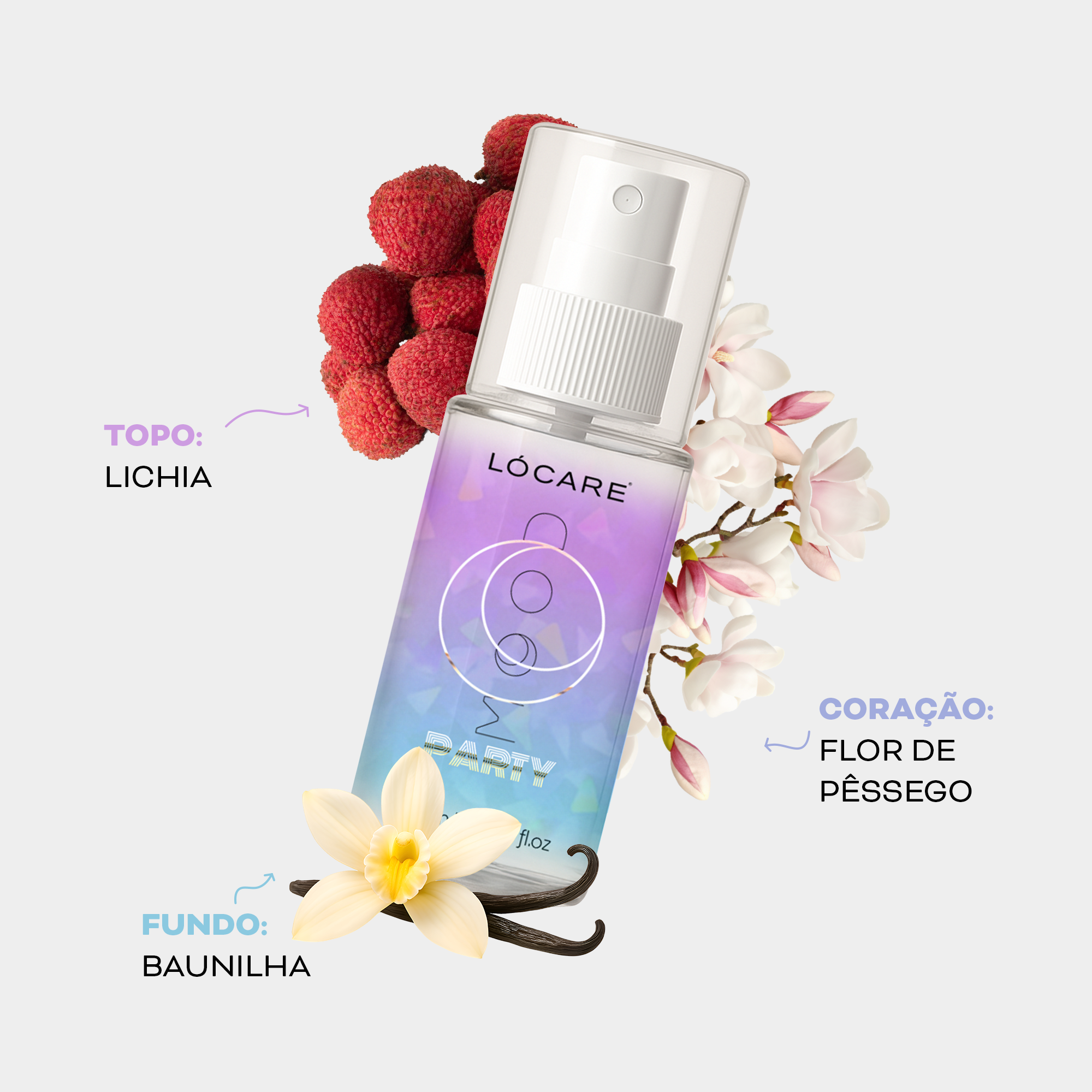 O Party traz a vibração das noites inesquecíveis. Começa com frutas efervescentes, evolui para um floral luxuoso e finaliza com um fundo doce e sensual.
