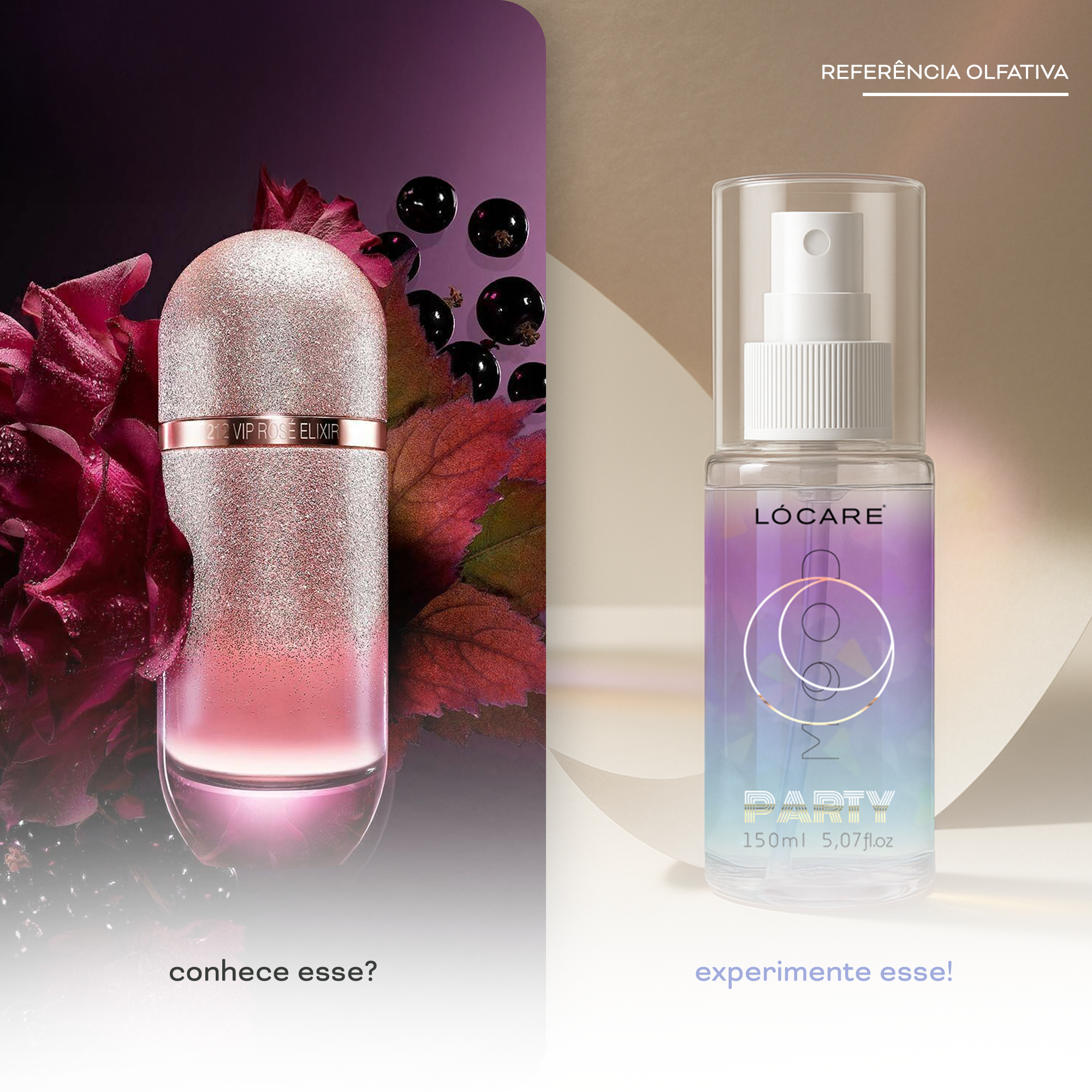 O Party é inspirado na sofisticação e intensidade do 212 VIP Rosé Elixir. Uma releitura leve e versátil, com frescor frutal, flores marcantes e um fundo gourmand irresistível.