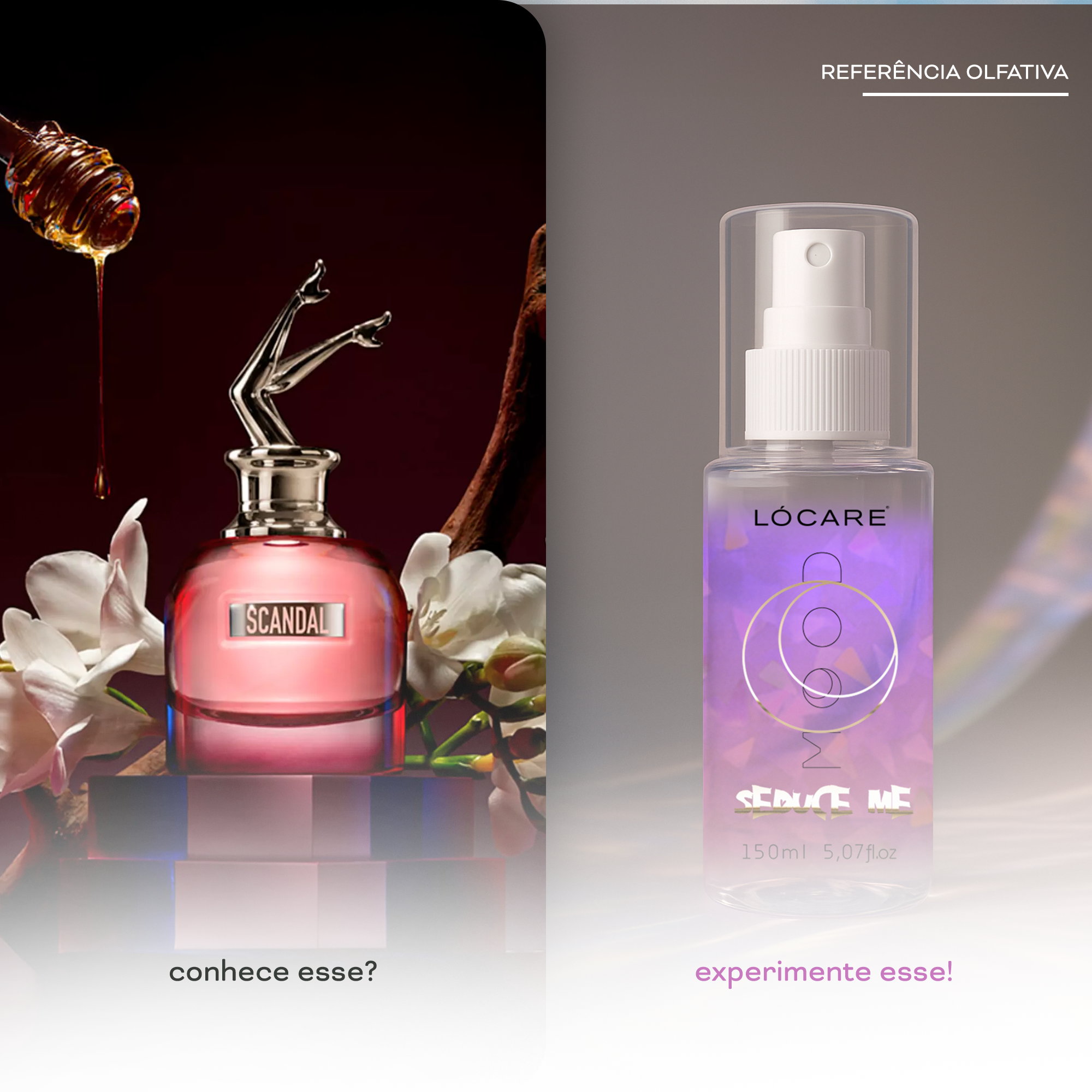 O Seduce Me é inspirado na ousadia e intensidade de Scandal, de Jean Paul Gaultier. Uma releitura mais leve e versátil, que combina o doce viciante do mel, flores brancas radiantes e notas frutais suculentas.