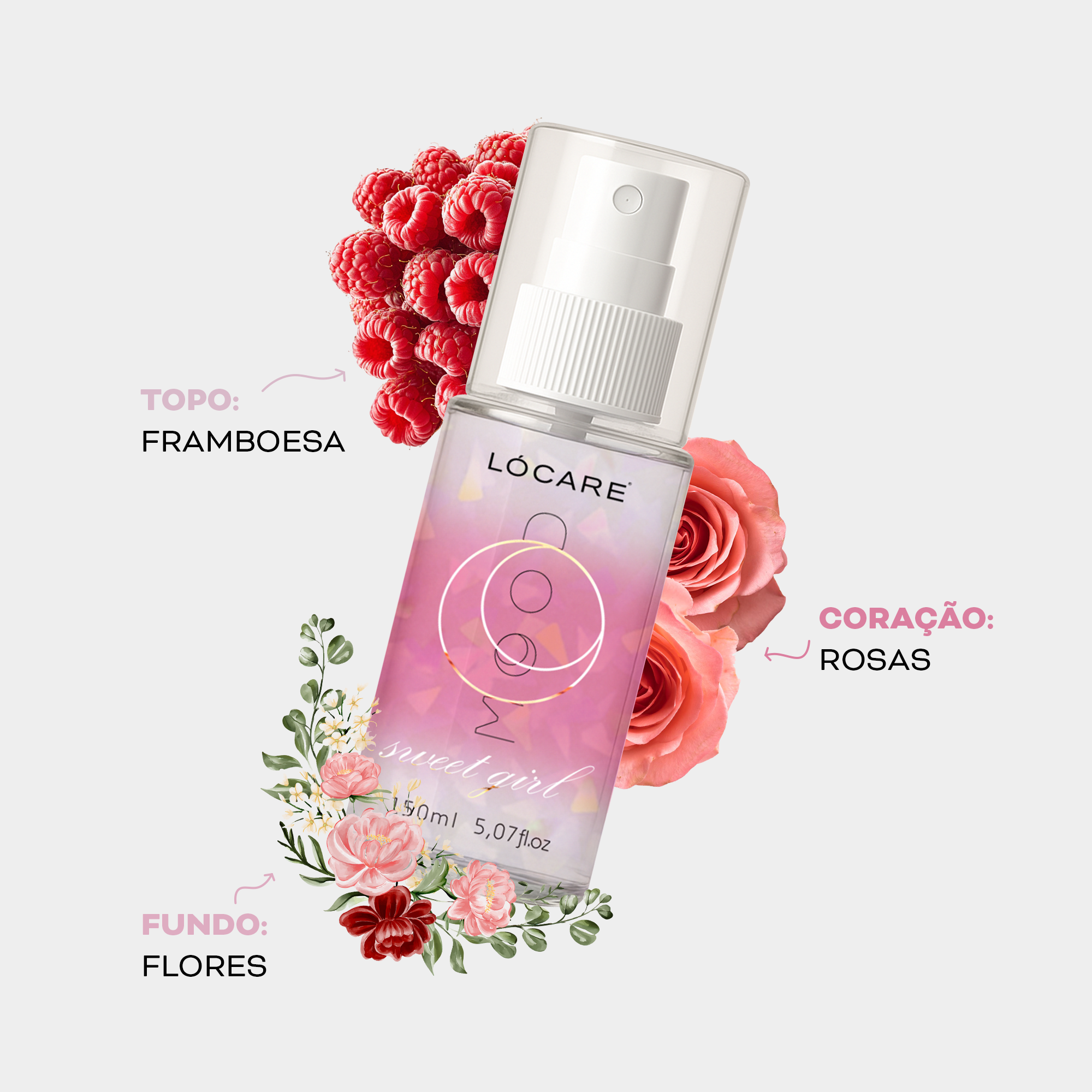 O Sweet Girl não é só um cheiro doce — é uma experiência sensorial que começa com frutas vermelhas suculentas e evolui pra um floral envolvente e elegante.
