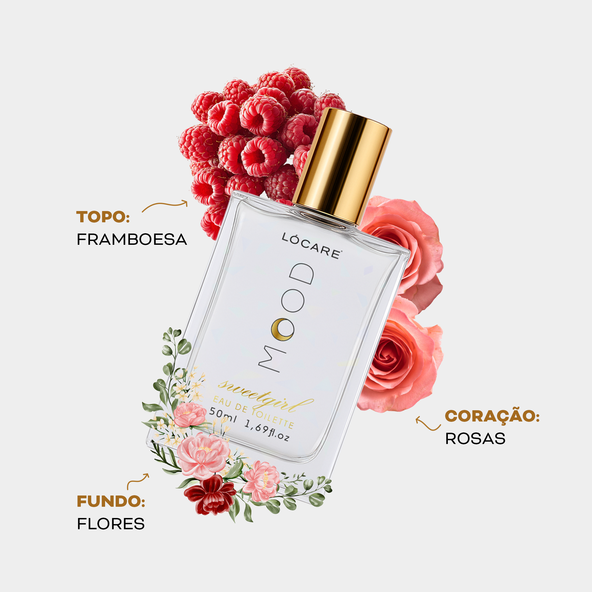 O Sweet Girl abre com notas de frutas vermelhas intensas, evolui para um coração floral delicado e finaliza com um fundo quente e adocicado.
